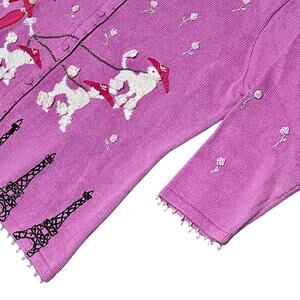 Storybook Knits Paris Sweater, Embroidered Cardigan, Paris Theme Knit, Vintage Style Cardigan, Ramie Cotton Sweater, Travel Theme Sweater, Novelty Knitwear, Women’s Purple Sweater, Collector Knit Cardigan, Art Knit Sweater, Winter, Colorful, Cottagecore, Grannycore, Whimsical