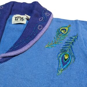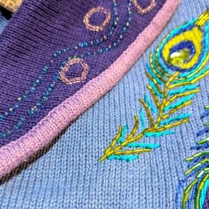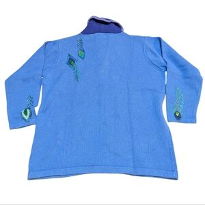 Storybook Knits Peacock Pizazz Feathers Embroidered Beaded Sweater size Medium