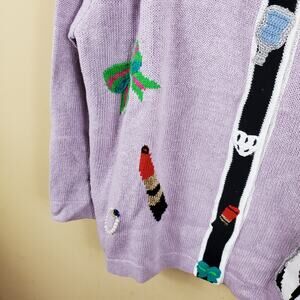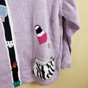 Storybook Knits Purple Button Front Cardigan Lipstick Bow Nail Polish Makeup L