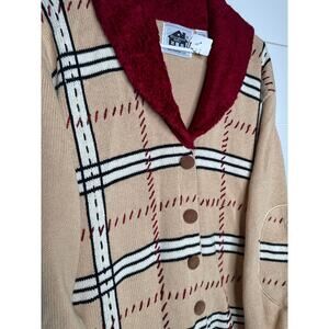 Storybook Knits Reindeer Plaid Full Button Cardigan Sweater Fur Detail - LG, NWT