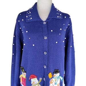 Storybook Knits Snowman Embroidered Pearl Scattered Snow Cotton Blend Size Small
