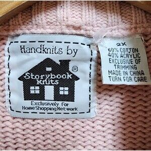 Storybook Knits Sweater Womens 2X Pink Cable Knit Cardigan Full Zip Rhinestones