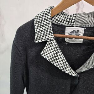 Storybook Knits Sweater Womens Large Black Houndstooth Striped Artsy Blazer