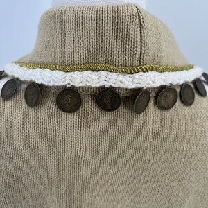 Storybook Knits Tan Cream Sweater with Queen Elizabeth II Coins Embellished Cardigan S. Pre-owned.