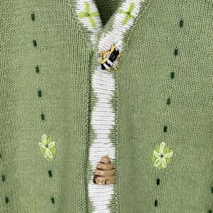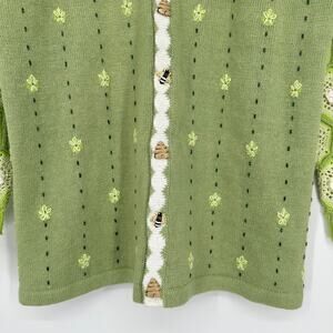 Super cute vintage 80’s/ 90’s sweater by Storybook Knits. Features cute bumblebee novelty themed buttons with honeycomb crochet knit sleeves.