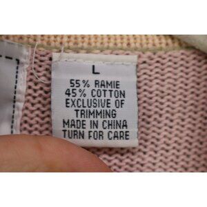 Storybook Knits Vtg. Beaded Embroidered Sweater-Size Large. Item is in Great Condition but does have a small spot (see pics). The material is 55% Ramie and 45% Cotton. Laying flat measuring armpit to armpit it is 24'' and 31.5'' in length.