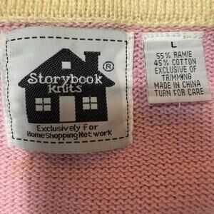 Storybook Knits Women Cardigan SZ L Pink Elephant Beaded Sequin Beaded Teacher