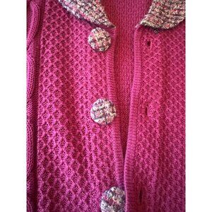 Storybook Knits Womens Button-Up Wafffle Knit Cardigan Tweed Detail 2X