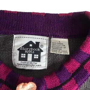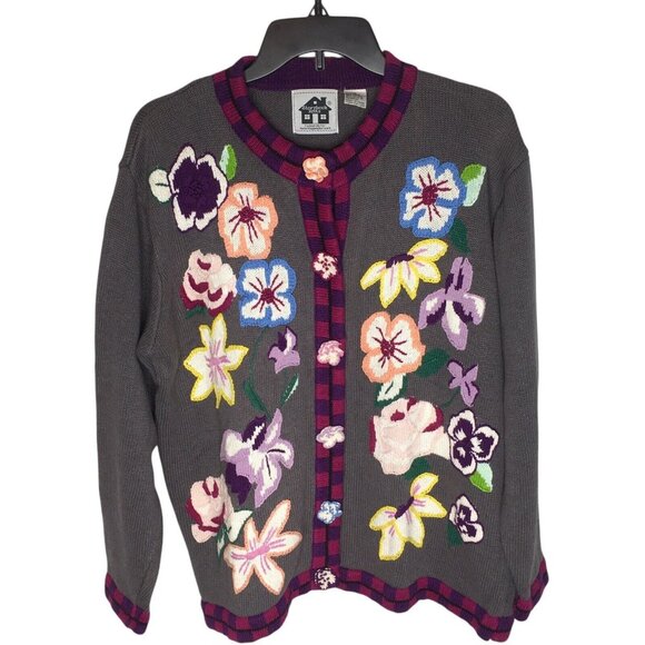 Storybook Knits Womens Embroidered Floral Cardigan Sweater Button Up Sz Large