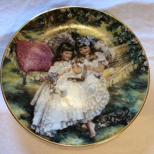 Gold trim and beautiful picture of 2 girls reading Storybooks. Gently used. no nicks, chips, cracks or crazing. Please, see all photos as they are part of the description. Comes from smoke and pet free studio. I am listing several of these. Be sure to check out my other sales and save on shipping. Approximate measurements 8.5"