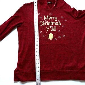 Storybuk Christmas Hoodie Top sz L Studded Kangaroo Pocket Lightweight Red