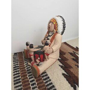 Storyteller Native American Family Hand Painted Clay Chief Sculpture Southwest