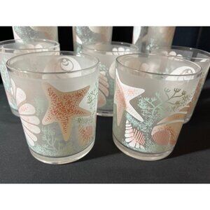 Stotter Vintage Plastic Beach Scene Seashells Sand Dollar Glasses Set of 8