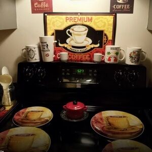 Stove Burner Covers Coffee Themed Metal Round Covers Set of 4 NEW Covers