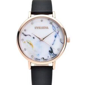 Strada Austrian Crystal Japanese Movement Stone Pattern Dial Watch With Black Faux Leather Strap. Brand new in box!