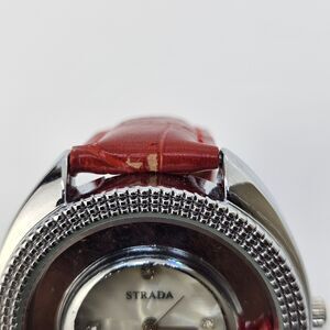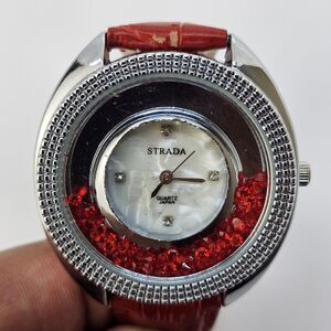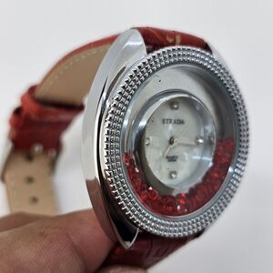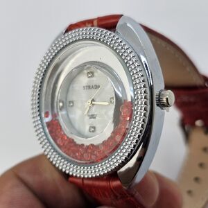 Strada Women’s Watch 40MM Red Leather Bands Floating Crystals New Battery