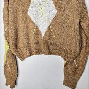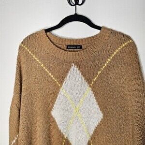 Stradivarious Preppy Argyle Drop Shoulder Crewneck Sweater Semi Cropped Size M