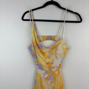 Elevate your wardrobe with this stunning Stradivarius asymmetrical midi dress. Featuring a chic cutout and elegant cowl neck, this dress exudes feminine charm. Perfect for special occasions or a night out. Size S.