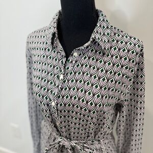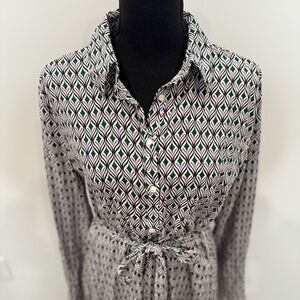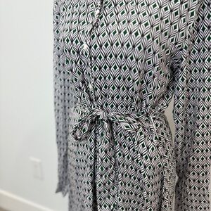 Stradivarius Belted Long Sleeve Maxi Front Button Up Side Slit Dress (Large)