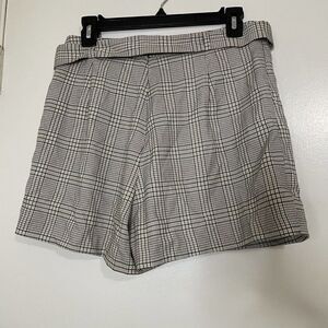 Stradivarius Belted Tan plaid side slit Skirt high waist mini shorts size US 8