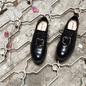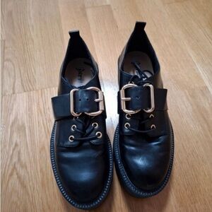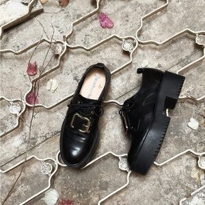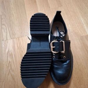 Stradivarius Black Leather Platform Shoes with Silver Buckle