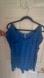 Royal blue cold shoulder top. Has four buttons on front as decor and one button on each short off shoulder sleeve. Loose casual shirt, perfect for summer. Two pockets in front. Has been worn but in good condition.
