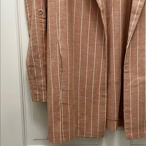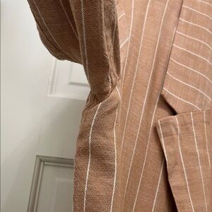 Stradivarius Brown and White Striped One Button Closure Casual Blazer - Sz Small