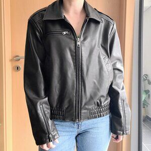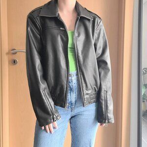 Stradivarius Chocolate Brown Faux Leather Aviator Bomber Jacket Women's Small