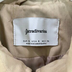 Stradivarius Cream Long Sleeve Collared Button Down Belted Trench Coat Size S