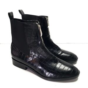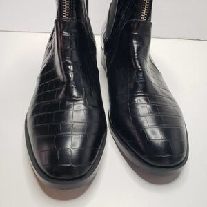 Stradivarius Croc Embossed Stud Booties Ankle Boots 40 9 9.5 Black Zip Top