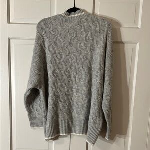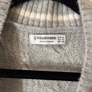 Stradivarius Gray Oversized V-Neck Sweater with Cable Knit Design NWOT