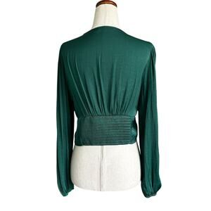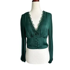 Stradivarius Green Satin V-neck Crop Top Women's Size Medium | 39-38