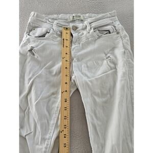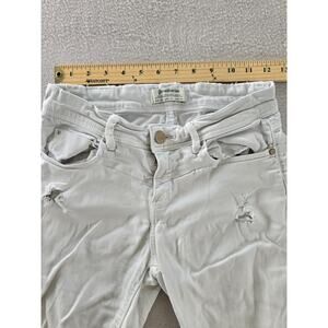 Stradivarius Jeans Womens Size 2 White Denim Mid Rise Distressed Pockets Zip