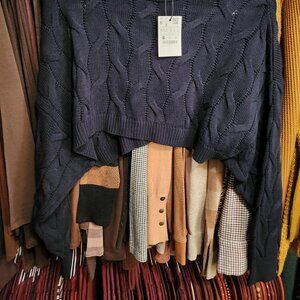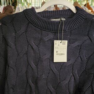 NWT Stradivarius Cropped Sweater. Size XS. Navy Blue. No Flaws