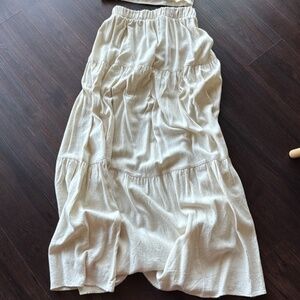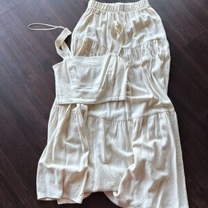 Stradivarius Skirt and top set. Top is S & Skirt XS. They're both pull on, skirt with stretch waistband, skirt length approximately 38", waist stretches from 11-18" laying flat. Viscose & Linen blend fabric. Worn maybe twice, no damage or stains. Great for the summer & easy to wear. Purchased in EU. No trades.