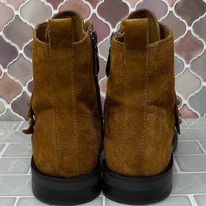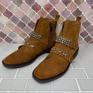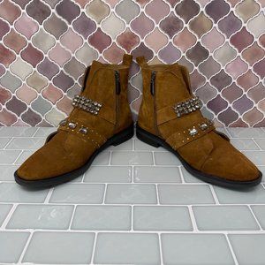 Stradivarius Suede Jeweled Strap Boots in Brown, Size 39/8.5