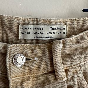 Stradivarius • Super High Rise Cuffed Camel Shorts