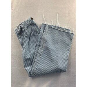 Women’s Stradivarius Striped Blue & White Pants - Size 36 Elevate your wardrobe with these chic Stradivarius striped pants, featuring a timeless blue and white vertical stripe design that flatters every silhouette. These lightweight, easy-to-style pants are perfect for casual outings or a dressed-up look with heels and a blouse.