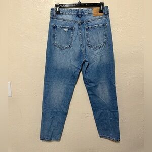 Stradivarius Mom Jeans Straight Leg Medium Wash Distressed Size 6