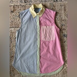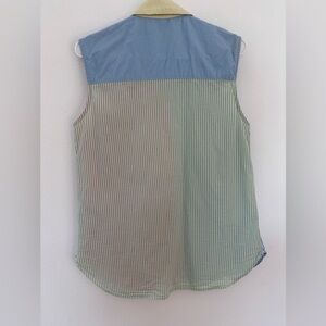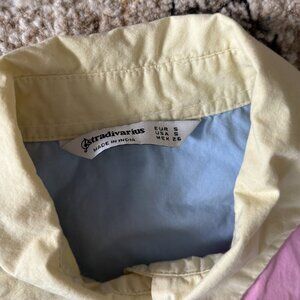 Stradivarius Womens Sleeveless Button Down Collared Pastel Striped Tank Top