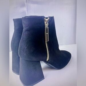 Stradivarius Womens Suede Black Ankle Boots Chunky Heel Side Zip Sz 37