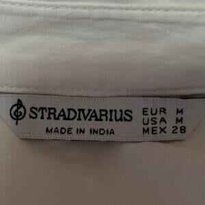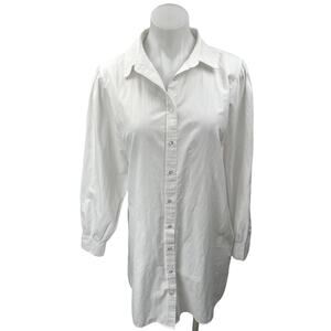 Stradivarius Women's White Long Sleeve Button Down Collar Mini Shirt Dress Sz M