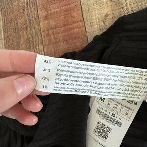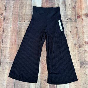 Stradivarius black striped bohemian wide-leg pants in women's medium offer effortless style and comfort. The chic striped design and breathable fabric make them perfect for casual outings or elegant occasions. With their flowy silhouette, these versatile pants are a must-have for boho-inspired fashion.