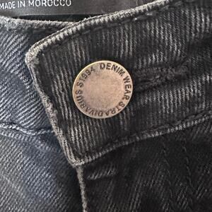 Item is a dark denim wash either gray or faded black