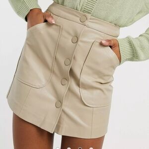 Stradivarius faux leather skirt with front pockets in stone New with tags