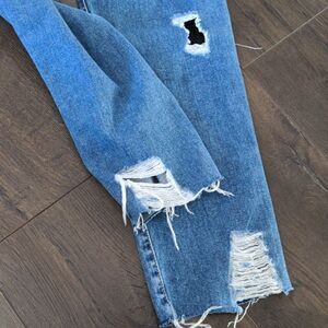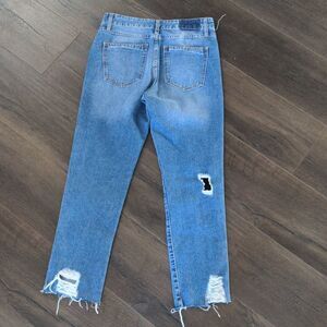 Stradivarius Straight Leg Jeans with Distressed Mesh Details size 2
