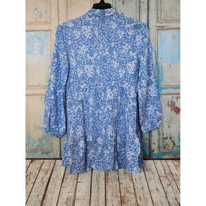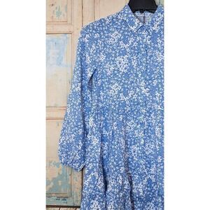 Stradivarius Womens Small Blue Floral Bishop Sleeve Ruffle Hem Mini Shirt Dress