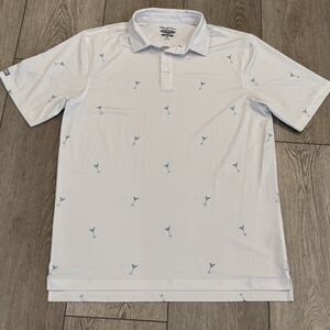Straight Down Golf Polo Shirt Mens M White Martini Glasses All Over Performance