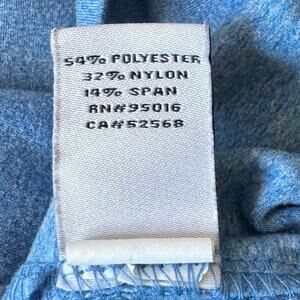 MATERIAL: 54% Polyester 32% Nylon 14% Spandex Machine Wash Hang/Flat Dry