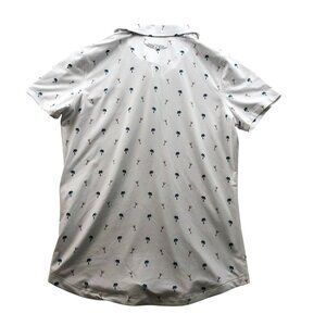This Straight Down Performance polo shirt brings a touch of tropical charm to your wardrobe with its playful palm tree and martini glass pattern. Crafted from polyester and spandex, it provides both comfort and flexibility. Ideal for casual outings or leisure activities, this shirt offers a relaxed fit.